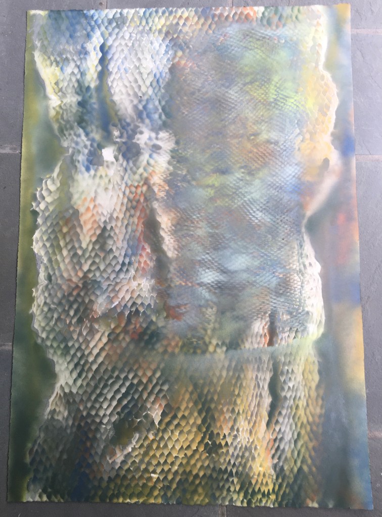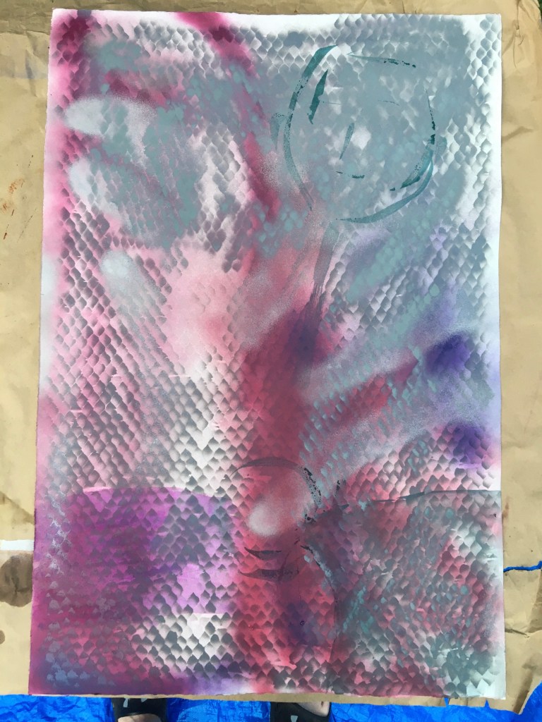 The previous 4 photos are enamel, and some gouache on the 30” x 42” cotton paper.