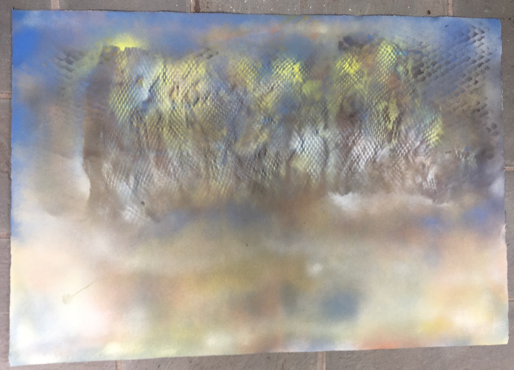 This series began in June when I began experimenting with very fine Japanese paper. I would use gouache and charcoal, place the paper on a rough surface and see what texttures would appear. I realized the paper was too thin so I switched to a heavier 150lb cotton paper - larger size 30” x 42 “