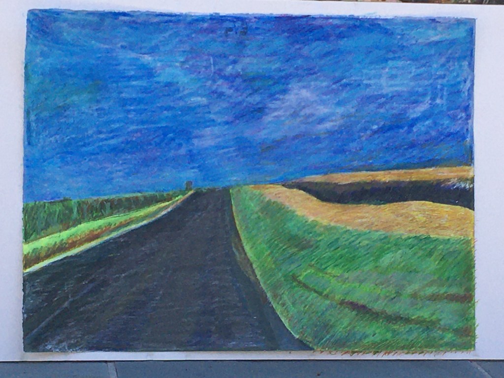 Harris Road – Step Ten – Oil pastel and gouache on paper – 22” x 34”